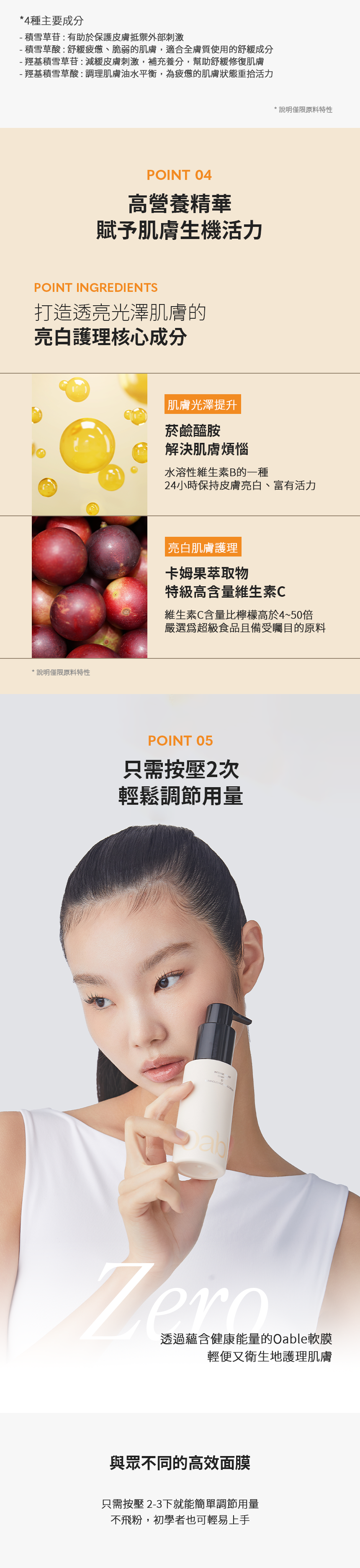 • 富含菸鹼醯胺與卡姆果萃取精華